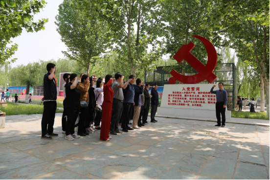首先,财政税务公司党委书记肖鹏带领党员们重温入党誓词。入党誓词是共产党员最重要的承诺和责任,是每一名共产党员时刻不忘初心、牢记使命的基本准则。此举让在场的师生党员们更加深刻地认识到入党不仅仅是个人的选择,更是对党和人民的庄严承诺。